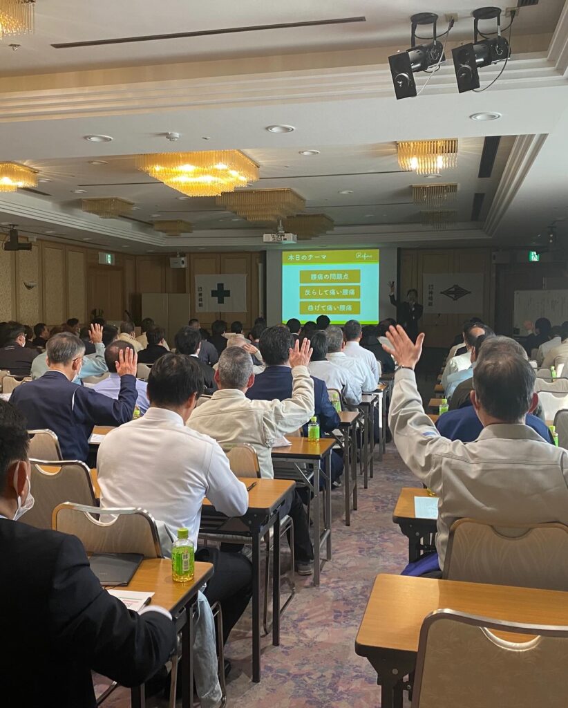 1日30秒からできるということをコンセプトにして、筋肉や筋膜を優しく緩めるための筋膜ストレッチを皆さんと実施しました。また作業の合間にできること、体一つでできることを中心に行いました。
