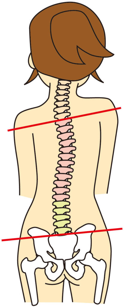 側湾症とは簡単にいうと、後ろから背骨をみたときに横方向に曲がっていってしまう状態です。
